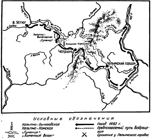 от великого князя. 9 мая 1483 года из Устюга отплыла «судовая рать», в состав которой помимо великокняжеских служилых людей и устюжан вошли контингенты из Вологды,