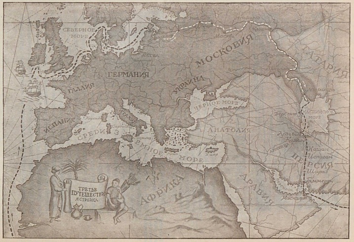 совсем самостоятелен и следует своему основному источнику — описанию путешествия голштинского посольства в Россию в 1637, 1639 и 1643 годах Адама Олеария.