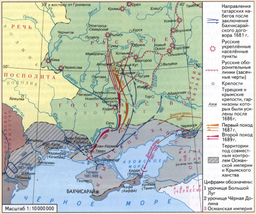 В осуществление этого договора состоялся (1687) первый поход в Крым во главе с Голицыным. Видимо, правительство Софьи стремилось успехами