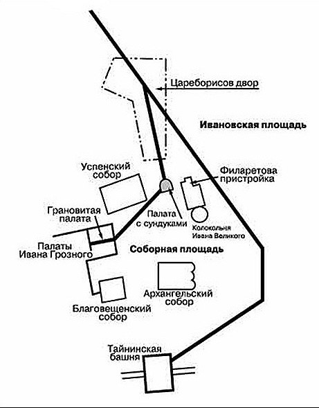 “Есть в Москве под Кремлём-городом тайник, и в том тайнике есть две палаты, полны наставлены сундуками до стропу. А те палаты за великою укрепою; у тех