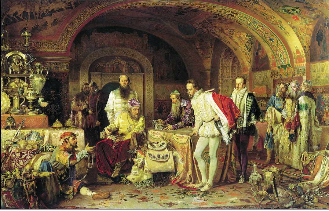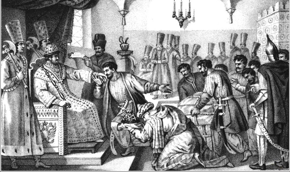 И это совсем не опора. Государева рука держит настоящее оружие. Именно посох проткнул ногу слуги заклятого врага – князя Курбского, не раз гулял он по спинам неугодных бояр,
