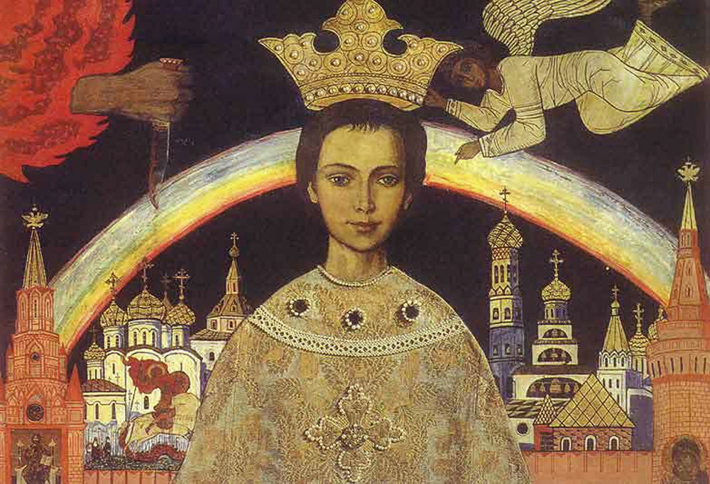 стенами и благоговея перед величественным собором Василия Блаженного – лучшего достижения зодчества времен Ивана Грозного, художник всюду видел образ царя, слышал его властный