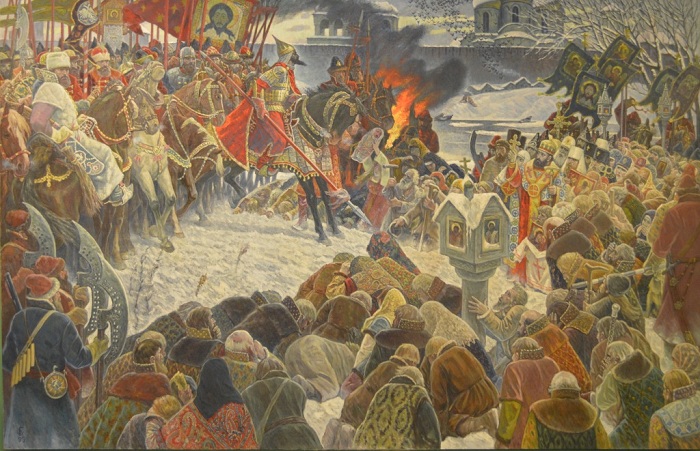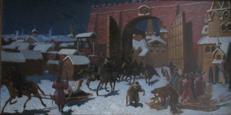 московские улочки домов. Смиренно притихла средневековая, укрытая снегом, Москва. Тверд и суров ее правитель.