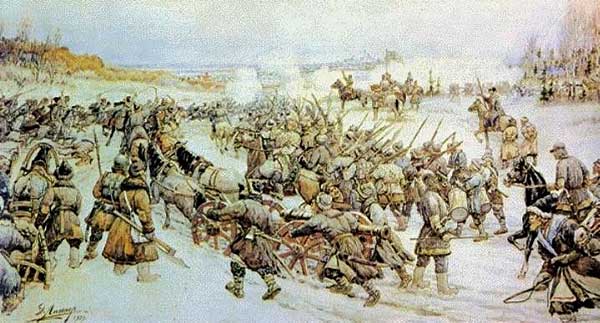 Битва войска Болотникова с царской армией. Картина Э. Лисснера