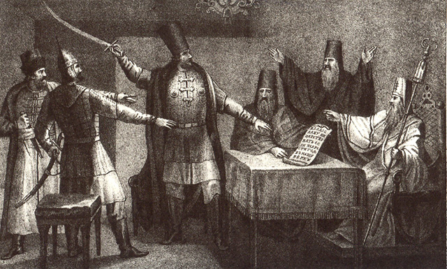обвинение в государственной измене, основанное на слухах о том, что якобы, находясь в польском плену, присягнул на верность королю Сигизмунду III.